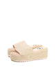 Atrévete a brillar con nuestras sandalias doradas de mujer con cuña alta de esparto. El diseño incorpora un encantador lazo y una hebilla ajustable, añadiendo feminidad y detalle a cada paso. Su plantilla acolchada promete confort durante todo el día, mientras la plataforma de esparto te proporciona altura sin sacrificar estabilidad. Perfectas para eventos de verano o para añadir un toque chic a tu vestimenta diaria.