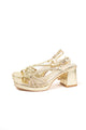 Sandalias mujer mules contacón alto y plataforma efecto madera con tachas