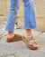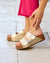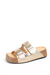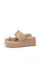 Sandalias de plataforma pla...Sandalias con doble hebilla dorada y plataforma corcho