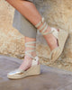 Sandalias de cuñas con tejido calado, suela de yute, estilo slingback y puntera cerrada Sandalias