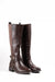 Bota Alta de Montar Marrón con Elástico Trasero, Correa de Cocodrilo y Tacón Bajo