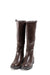 Bota Alta Marrón Oscuro de Piel Sintética con Suela Track y Tacón Bajo