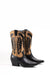 Botas Cowboy Bicolor Negro y Camel con Recortes de Mariposa y Tacón Alto
