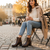 Botines de Tacón de Bloque con Cremallera y Remaches Metálicos