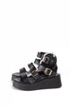 Sandalias doradas cuña alta...Sandalias negras de plataforma con tiras múltiples y hebilla