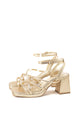 Sandalias doradas Alpargatas plana mini plataforma mujer diseño crochet