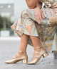 Sandalias doradas con tacón mujer con pulsera tiras trenzadas