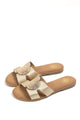 Sandalias planas estilo boho con detalles de nácar y tejido multicolor