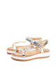 Sandalias tacón bajo efecto madera con plataforma mujer con tachas