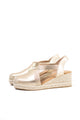 Estas alpargatas zuecos combinan el encanto rústico del esparto con un elegante acabado dorado. Su plataforma elevada asegura una postura ergonómica, mientras que la plantilla acolchada ofrece una comodidad superior. Ideales para eventos casuales o un paseo veraniego, estas zuecos son tan prácticas como sofisticadas, brindando estilo y comodidad todo el día.