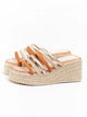 Sandalias planas de esparto...Sandalias doradas con tacón alto